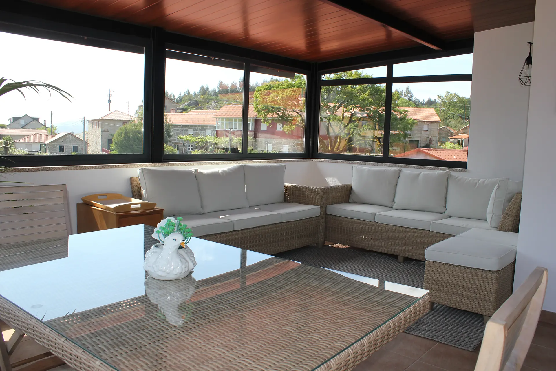 No terraço fechado encontra um espaço que lhe pode proporcionar momentos de repouso, leitura, meditação e desfrutar de vista panorâmica sobre a natureza envolvente, com vistas para a montanha e da aldeia de Vilarinho.