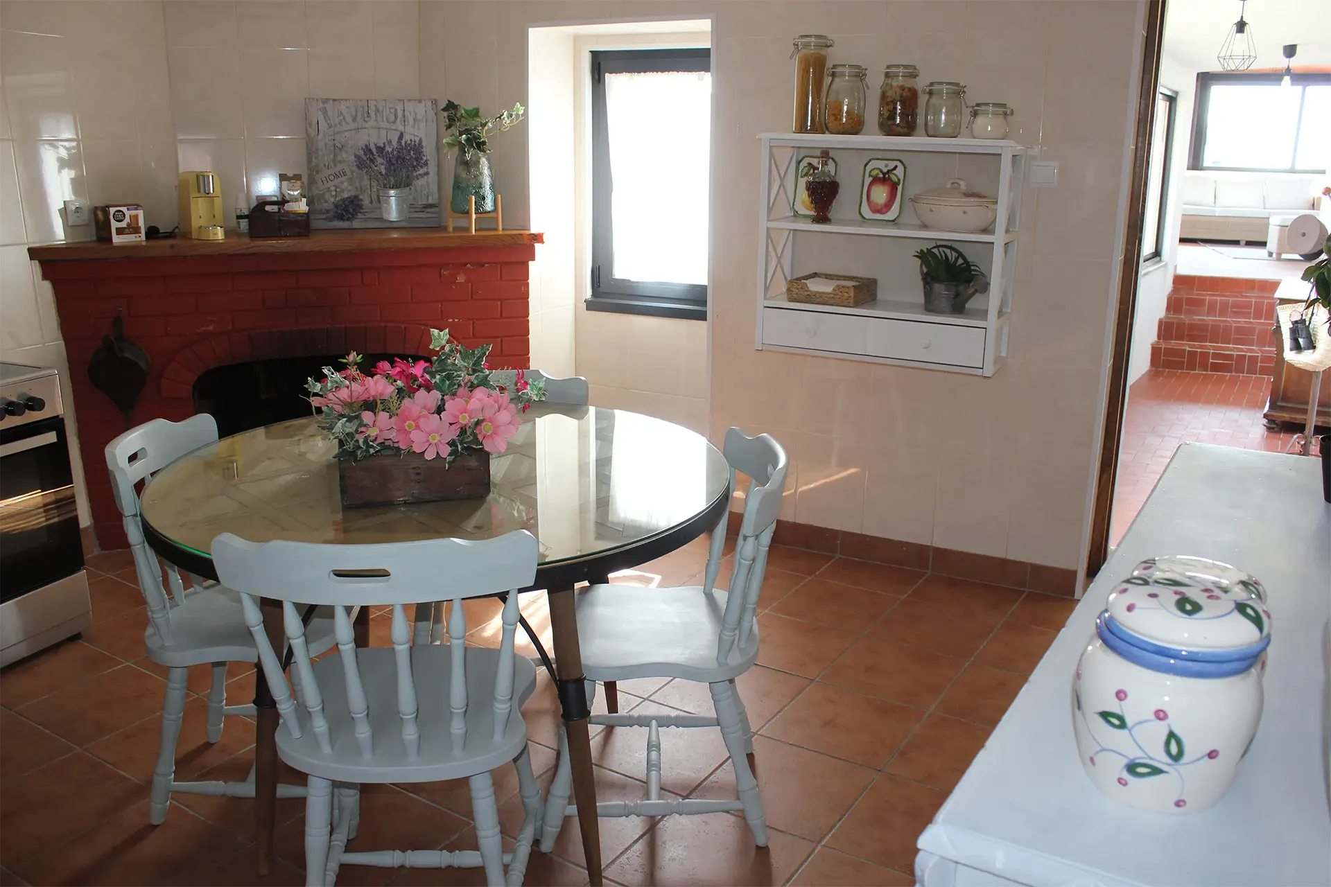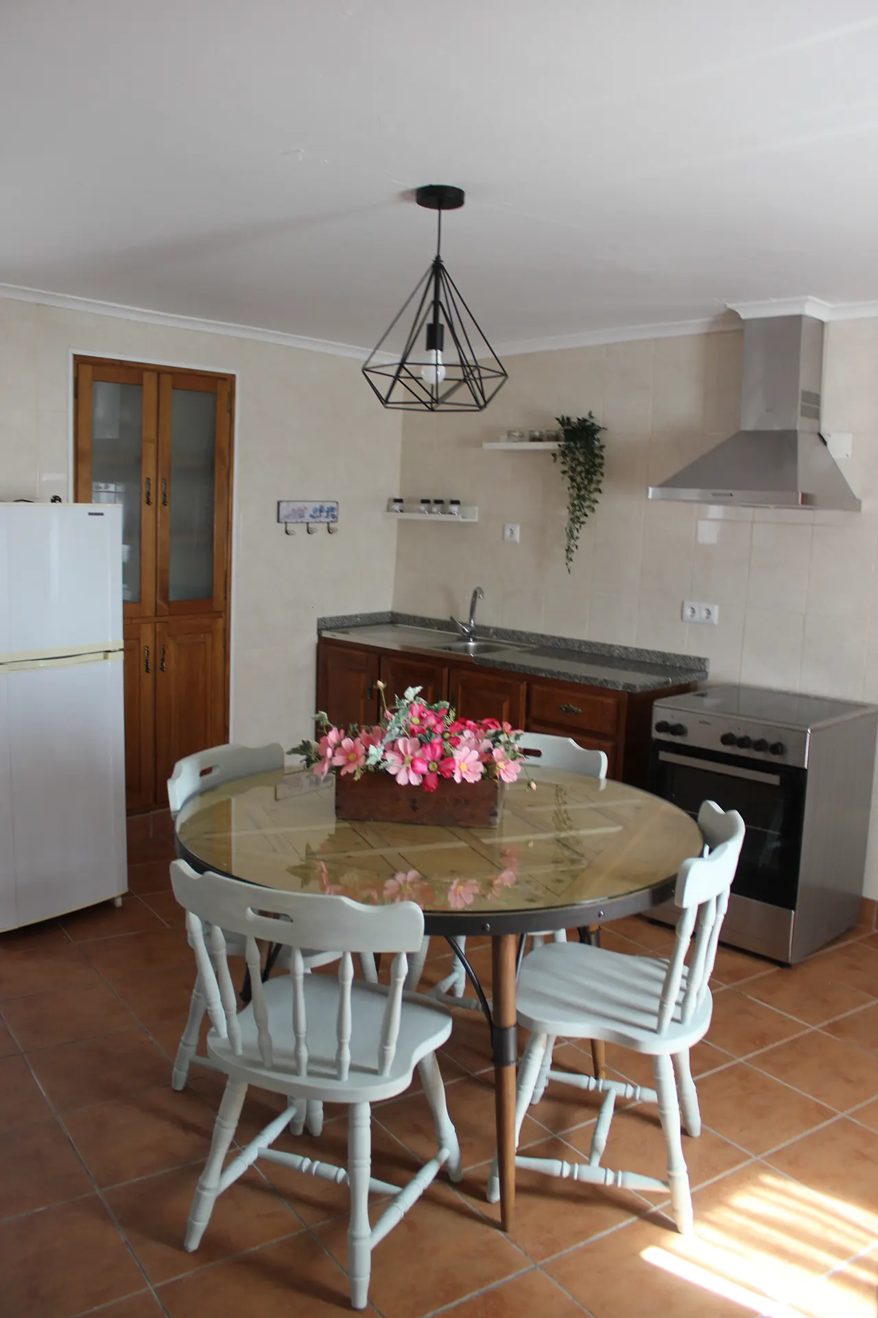Esta casa tem acesso comum a uma cozinha equipada com churrasqueira interior e sala de jantar.